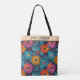 Vibrant Retro Floral Pattern with Teal Squares Tote Bag