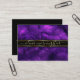 Get noticed with liquid Alcohol ink art and Watercolor painting in vibrant royal purple - a black bar with gold lines highlights the name text area - add your name and details to the back in gold on a black background.