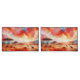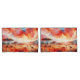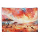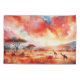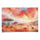 a stunning blend of fiery reds, oranges, and blues that capture the essence of an African sunset. The silhouettes of acacia trees and grazing giraffes create a serene and picturesque scene.