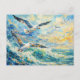 Vibrant Seagulls Over Ocean Waves Impressionist Holiday Postcard