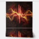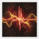 A striking visual of red and orange sound waves with flowing lines and energy pulses, creating a sense of rhythm and motion against a dark background.