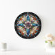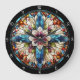 Vibrant Stained Glass Floral Cross Large Clock
