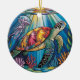 Vibrant Stained Glass Sea Turtle Ocean Design Ceramic Ornament
