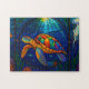 Vibrant Stained Glass Sea Turtle Ocean Design Jigsaw Puzzle