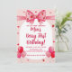 Vibrant Strawberry Coquette Bow Berry First Birthd Invitation