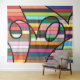 Vibrant Striped Abstract with Bold Black Swirls Tapestry