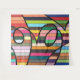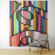 A lively mix of horizontal stripes in red, teal, orange, pink, and yellow is energised by sweeping black swirls that loop and twist across the design. The strong curves add a sense of motion, almost like calligraphy dancing over a rainbow of colour. With its striking contrasts and playful rhythm, this modern abstract feels both bold and uplifting, perfect for catching the eye.