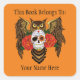 Vibrant Sugar Skull Owl Red Roses Bookplate Square Sticker
