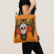 Vibrant Sugar Skull Owl Red Roses Tote Bag