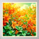 Capture the warmth of summer with this vibrant art print featuring sunlit orange and yellow flowers and lush green leaves in close-up detail. Perfect for your style (This Design Made With AI). Place Order Today and Embrace the Joy of Shopping!