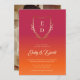 This design features traditional classic romantic sunset inspired maroon orange gradient coloured background, elegant golden monogram and calligraphy script personalised photo save the date invitation. This product can be easily personalised. If you need help with the customisation of the product or need matching products kindly please contact me via Zazzle.