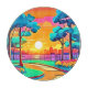 A captivating illustration of a vibrant cityscape bathed in the warm glow of a setting sun, framed by lush greenery and a winding path (This Design Made With AI). Place Order Today and Embrace the Joy of Shopping!