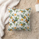 Vibrant and summery outdoor pillow features an allover pattern of tangerine citrus, white orange blossom and lush foliage in sunny orange and green o palette over a white background. Add bright touch to your patio, porch or pool area. Pattern repeats on reverse.