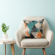 vibrant teal and mustard geometric pattern cushion