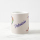This vibrant letter P features bright colours swirled in a tie-dye pattern. The monogram P is featured on both sides of the mug and the centre offers an open area to personalise with your name. Quickly and easily customise both the name and the solid background colour.
