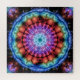 "Plasmagoria" features a mesmerising kaleidoscope mandala bursting with vibrant colours. This intricate and symmetrical pattern draws the eye with its dynamic blend of hues and radiant energy, making it a perfect statement piece for adding a touch of psychedelic flair to any surface.