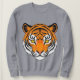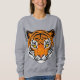 Bright tiger head graphic in orange, black and white with piercing yellow eyes; ideal for logos, sports branding, mascots, or apparel. Evokes power, courage, and wild energy suitable for bold campaigns.