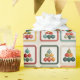 A playful grid of nine festive illustrations, each with vibrant Christmas ornaments or stylised tree shapes in triangular arrangements. Framed in bold holiday hues, this cheerful design brings a pop-art twist to seasonal decor and gifting.