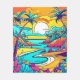A stunning tropical beach scene with a vibrant sunset, palm trees, and crystal-clear water. Perfect for fashion, travel posters, and summer vibes (This Design Made With AI). Place Order Today and Embrace the Joy of Shopping!