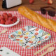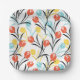Vibrant Tulip Pattern Floral Design on White Paper Plate