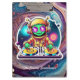 Get ready to party with this vibrant animated sticker featuring a funky alien DJ rocking the turntables! Adorned with a golden touch, this lively character radiates a groovy vibe against a light-coloured background, perfect for music-themed designs.