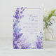 Capture the essence of a blooming summer meadow with this sophisticated botanical arrangement. This design features vibrant purple lavender stalks and delicate periwinkle blue blossoms that sweep elegantly along the left side and bottom corner. Soft, violet rose-like flowers anchor the base, while a minimalist thin gold line frame provides a clean and modern border for your text. The light lilac-grey background is accented with soft-focus floral shadows, creating a dreamlike sense of depth and a high-end, fine-art feel. This botanical design is an enchanting choice for a romantic garden wedding or a serene spring ceremony. The vibrant purple and gold color story makes it a flawless fit for an elegant outdoor bridal shower, a refined engagement party, or an intimate vineyard reception. It pairs beautifully with motifs like French provincial, modern romantic, or fine-art botanical, and coordinates perfectly with champagne gold accent, natural linen texture, and dusty violet decor.