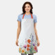 This vibrant watercolor wildflowers personalized apron showcases a pattern with a lively mix of purple, orange, and red jewel-toned blooms.