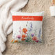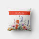 This vibrant watercolor wildflowers personalized throw pillow showcases a pattern with lively mix of purple, orange, and red jewel-toned blooms, paired with sleek modern script typography.
