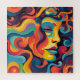 Vivid swirls and curls in a rainbow of colours create the abstract profile of a man or woman with a peaceful expression. Shades of blue, orange, yellow, and red blend harmoniously to outlines facial features and flowing hair.