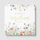 This design features a border of vibrant wildflowers in shades of red, yellow, green, teal, and blue. Perfect for casual summer baby showers.