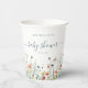 This design features a border of vibrant wildflowers in shades of red, yellow, green, teal, and blue. Perfect for casual summer baby showers.