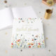 This design features a border of vibrant wildflowers in shades of red, yellow, green, teal, and blue. Perfect for casual summer bridal showers.