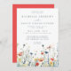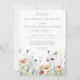 This design features a border of vibrant wildflowers in shades of red, yellow, green, teal, and blue. Perfect for casual summer weddings.