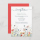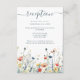 This design features a border of vibrant wildflowers in shades of red, yellow, green, teal, and blue. Perfect for casual summer weddings.