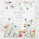 This design features a border of vibrant wildflowers in shades of red, yellow, green, teal, and blue. Perfect for casual summer weddings.