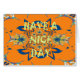 This artwork prominently features the phrase "Have a Nice Day" at its centre, with stylised text surrounded by a repeating pattern of abstract floral and geometric shapes. The composition is symmetrical and visually busy, effectively drawing the eye to both the text and the intricate pattern beneath. The background boasts a solid, bright orange that enhances the overall vibrancy.