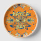 This artwork prominently features the phrase "Have a Nice Day" at its centre, with stylised text surrounded by a repeating pattern of abstract floral and geometric shapes. The composition is symmetrical and visually busy, effectively drawing the eye to both the text and the intricate pattern beneath. The background boasts a solid, bright orange that enhances the overall vibrancy.