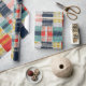 Add bold retro energy to your style with this vibrant woven plaid wrapping paper. Featuring a textured grid of colourful blocks and stripes in red, dark blue, yellow, turquoise, and white, the design mimics the look of a coarse, handcrafted fabric. The tactile effect of woven threads or pixel-like stitches gives it a rustic yet modern vibe, making it perfect for boho interiors, retro fashion accents, or craft-inspired gifts. Whether used for cosy home décor, seasonal styling, or as a standout accessory, this wrapping paper combines colour, texture, and artisan flair in one timeless pattern.