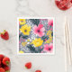 Vibrant Yellow And Pink Flowers On Grey Napkin