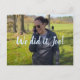 Vice President-Elect Kamala Harris: We Did It, Joe! personalised postcard. Commemorate the moment a jubilant Kamala Harris calls Joe Biden on the phone to tell him they won the 2020 Presidential Election, saying, "We did it, Joe!" This customisable postcard features a photograph of Kamala Harris outside on the phone callingJoe Biden in the historical moment when the first woman and first woman of colour tells the President-Elect they won the election. Personalise it by adding or changing text or images.
