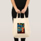 The printing came out very well, better than I had anticipated. The natural color fabric is sturdy with strong seams and comfortable handles. This tote fits easily over my shoulder. As it is filled, the bottom flattens out--very cool! I would buy this product again. This grocery tote holds a lot of groceries! The image quality was very good. The colors were a little darker than I had expected. The darkness may have been due to printing on a natural color fabric rather than on white. The cat design is attractively centered on the tote. The spirit of the design is very lively, just as it appears on the Zazzle website.
