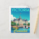 A bright and beautiful vintage-style travel poster for Victoria, Canada. This striking illustration captures the vibrant harbor with a majestic stately building (such as the Empress Hotel), sailboats, and a classic floatplane on the water. The art features a clear blue sky and water, evoking a perfect summer day on the West Coast. This retro artwork is ideal for travel lovers, fans of Canadian scenery, and those who appreciate bold, colorful travel illustration.