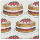 Fabric features an original marker illustration of a classic British Victoria sponge cake topped with strawberries and icing sugar.