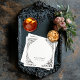Elevate your gothic wedding with a Victorian-inspired wedding cocktail napkins that exudes timeless elegance and mystery. Designed to resemble an antique book binding, this stunning design features intricate a black and white lacey filigree, evoking the charm of a bygone era. Let your love story unfold with a table number card as unforgettable as your day. Created by Simply Farmhouse Press.