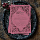Elevate your gothic wedding with a Victorian-inspired wedding program that exudes timeless elegance and mystery. Designed to resemble an antique book binding, this stunning design features intricate a black and burgundy wine lacey filigree, evoking the charm of a bygone era. Let your love story unfold with a program as unforgettable as your day. Created by Simply Farmhouse Press.