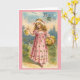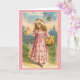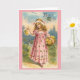 Vintage / Victorian Best Wishes greeting card. Adorable Victorian girl with a basket of flowers! Best Wishes!
