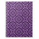 A very pretty and classy and fun damask kaleidoscope design in black and purple printed on a spiral bound note book.