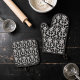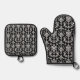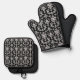 Victorian Black and White Damask Pattern Oven Mitt & Pot Holder Set