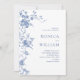 Victorian Blue French Garden QR code Photo Wedding Invitation