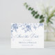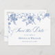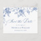 Elegant Vintage Blue French Garden Floral Wedding Save the Date Postcard.